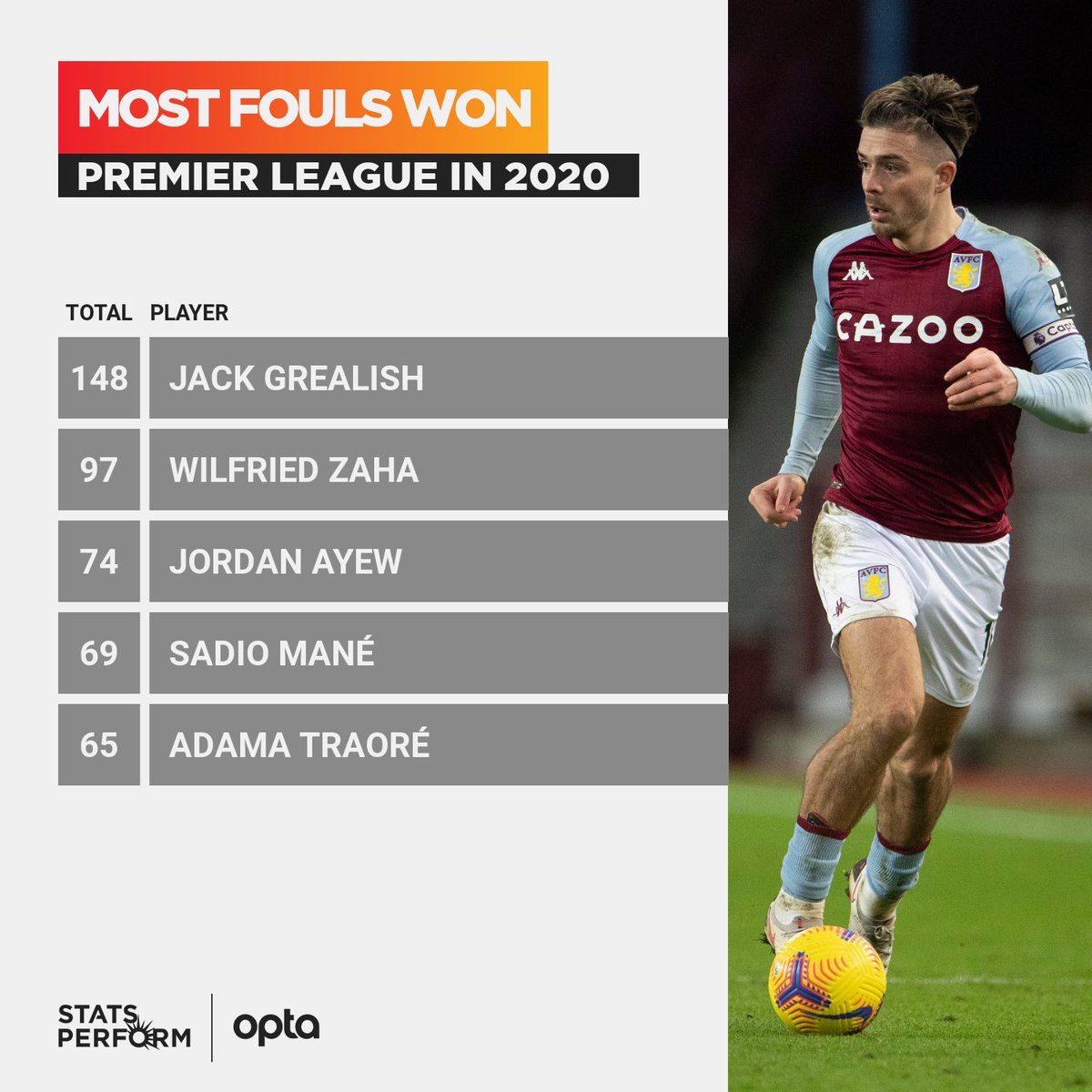 Optajoe On Twitter 148 Jack Grealish Won More Fouls Than Any Other Player In The Premier League In 2020 Indeed Grealish Won At Least One Foul In All 32 Of His